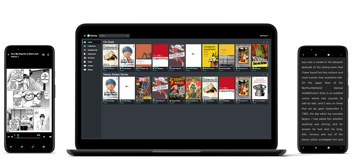 - Efficient Digital Library: Kavita is a self-hosted digital library that is lightning fast and supports a wide array of file formats. It allows you to easily read and share your server with friends.