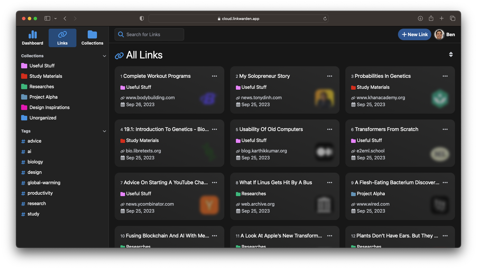 LinkWarden is a powerful, self-hosted service designed for managing and archiving bookmarks. It provides an intuitive interface for organizing and accessing your saved links, supports advanced features for enhanced productivity, and offers detailed link preservation options. With LinkWarden, you can maintain control over your bookmarks and ensure they remain accessible.